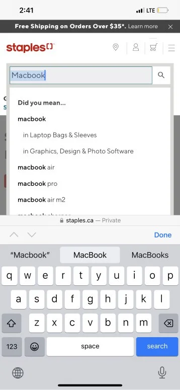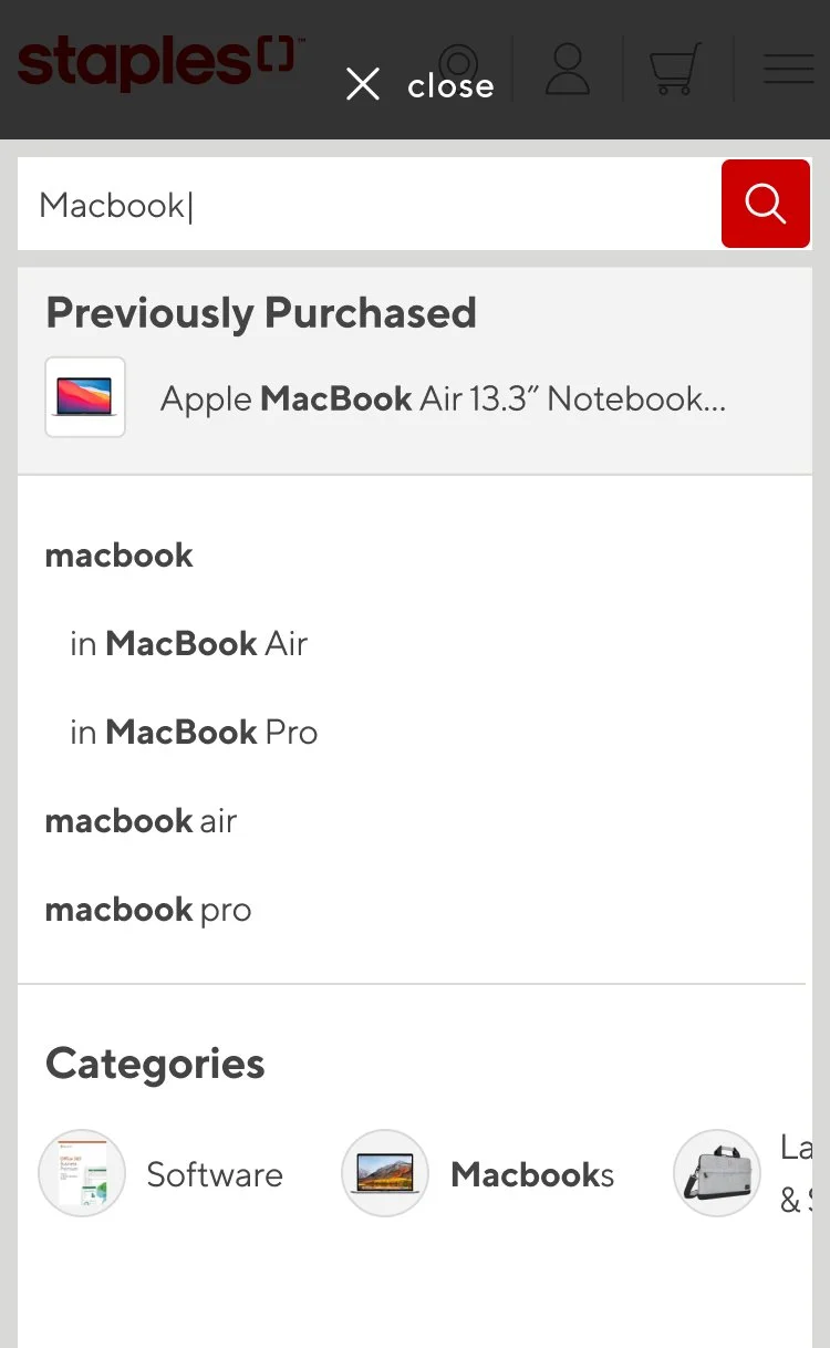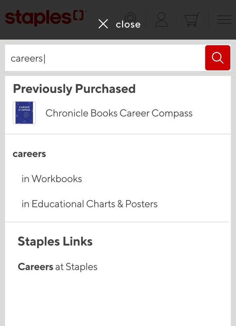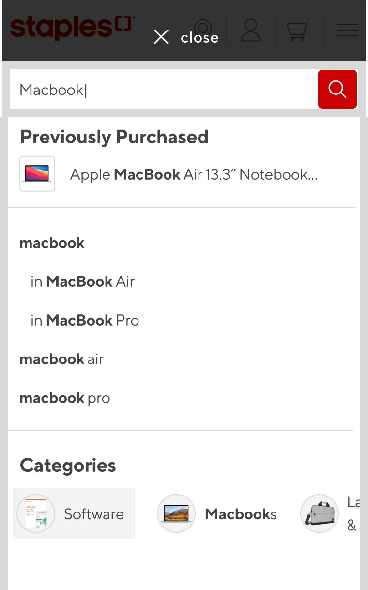 Staples wanted a more organized and cleaner way to present their search suggestions. Customers were presented with a lot of text, brands were being cut off within the search and users were finding it difficult to hone in on products.