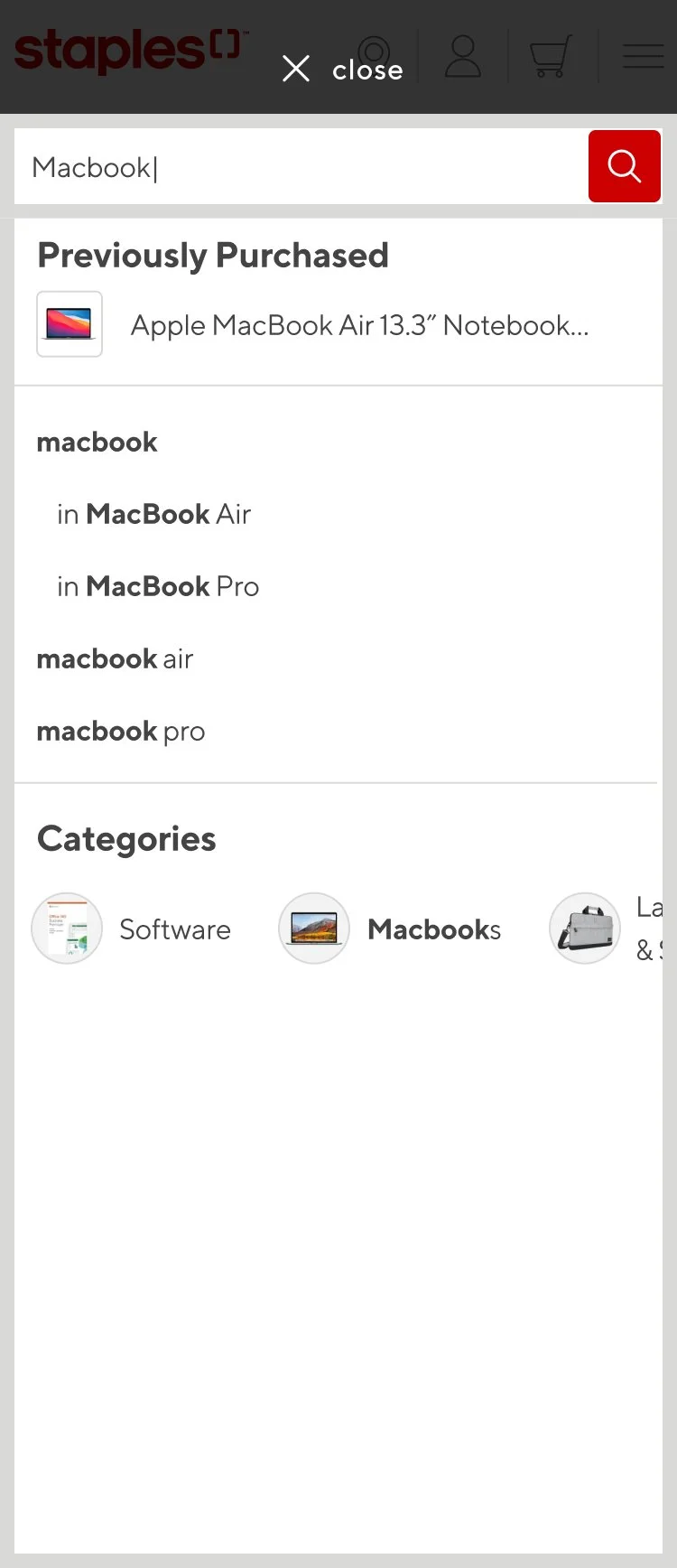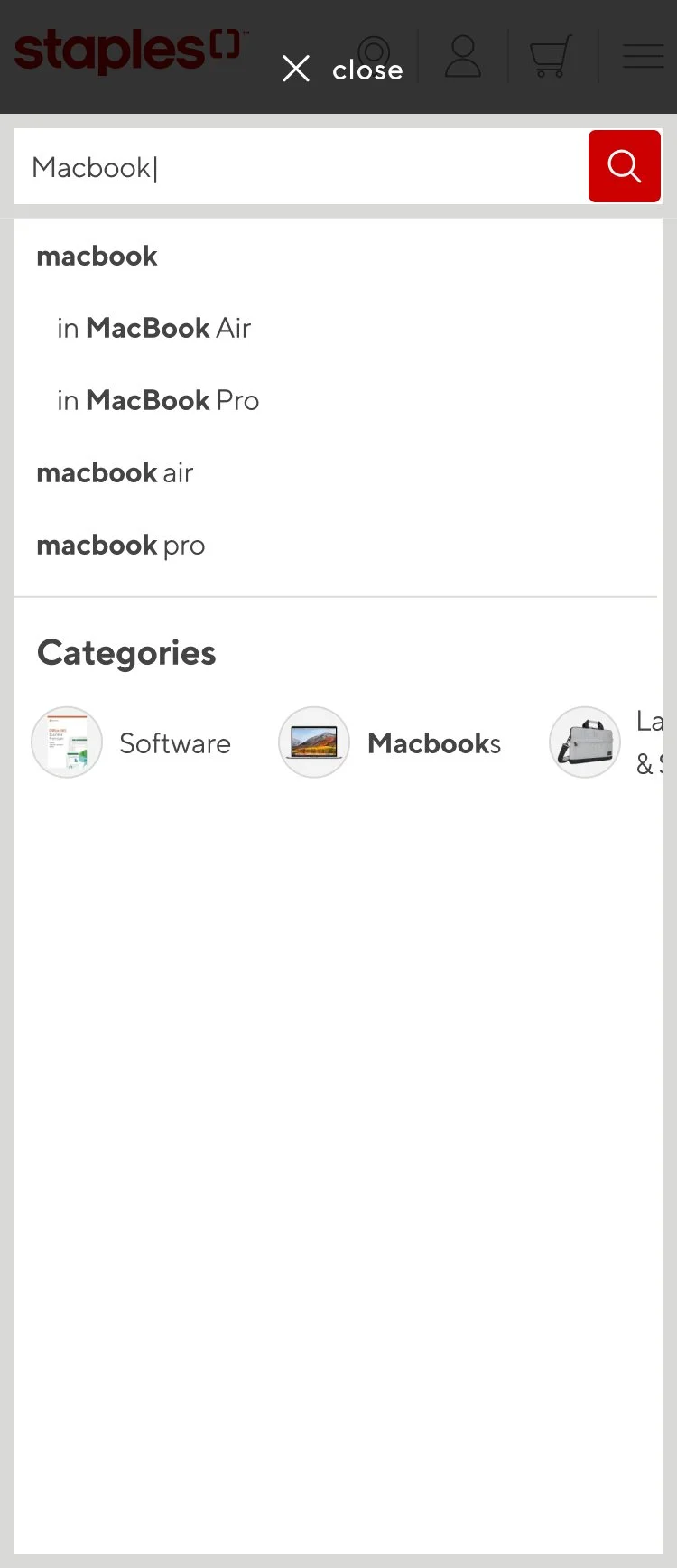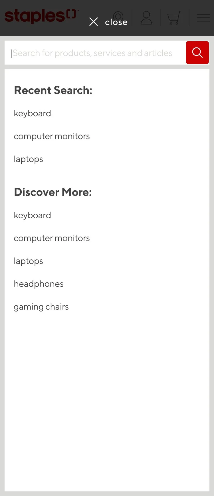 Staples wanted a more organized and cleaner way to present their search suggestions. Customers were presented with a lot of text, brands were being cut off within the search and users were finding it difficult to hone in on products.